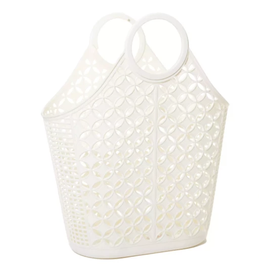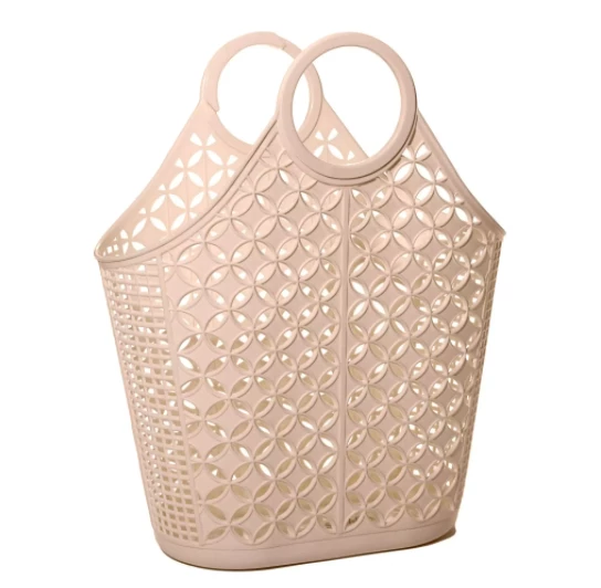waterproof tote bag perfect for hauling beach or pool essentials! open-weave makes it great for sand toys, too.