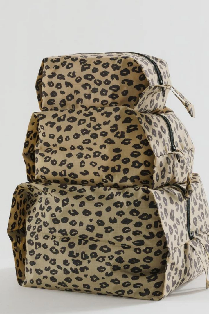 A set of three zippered pouches for travel and organization, all with loops for carrying and hanging on the go. Perfect for packing, organizing your bag, or home tidying.