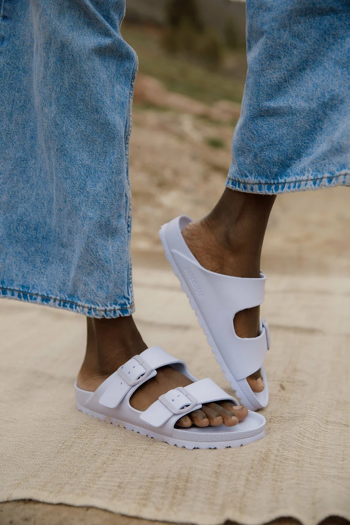 The BIRKENSTOCK Arizona is an icon with its timeless design. Modeled on the cork original, this sandal is made from ultra lightweight and highly flexible EVA. These sandals are shock-absorbent, waterproof, and skin-friendly. Wear them at the beach, in the garden, or in wellness and spa areas. It’s the perfect addition to your classic BIRKENSTOCK sandals.