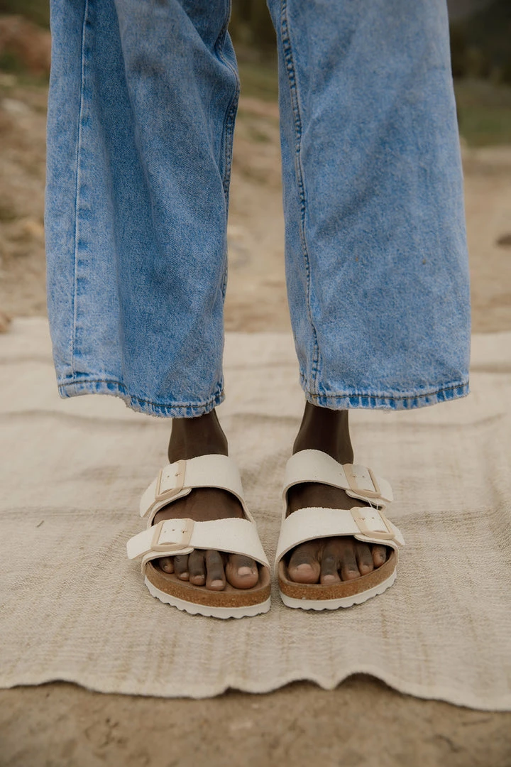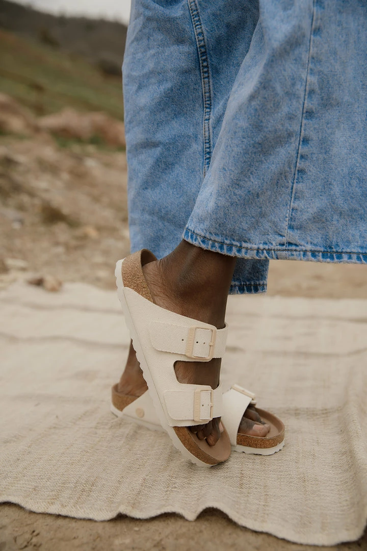 The legendary two-strap design from BIRKENSTOCK – the Arizona, now in a vegan material. Iconic style with the signature comfort of the BIRKENSTOCK footbed. The upper is made from a soft fabric.