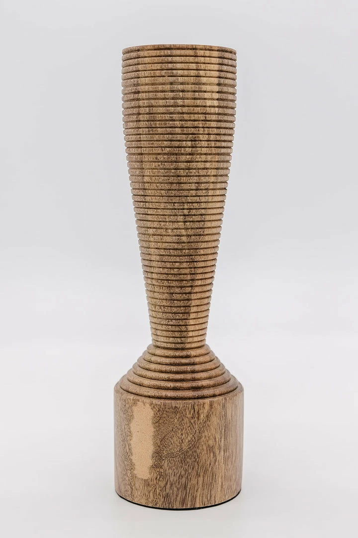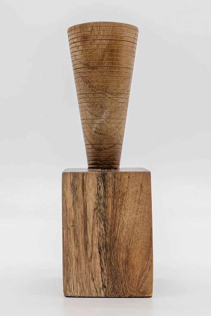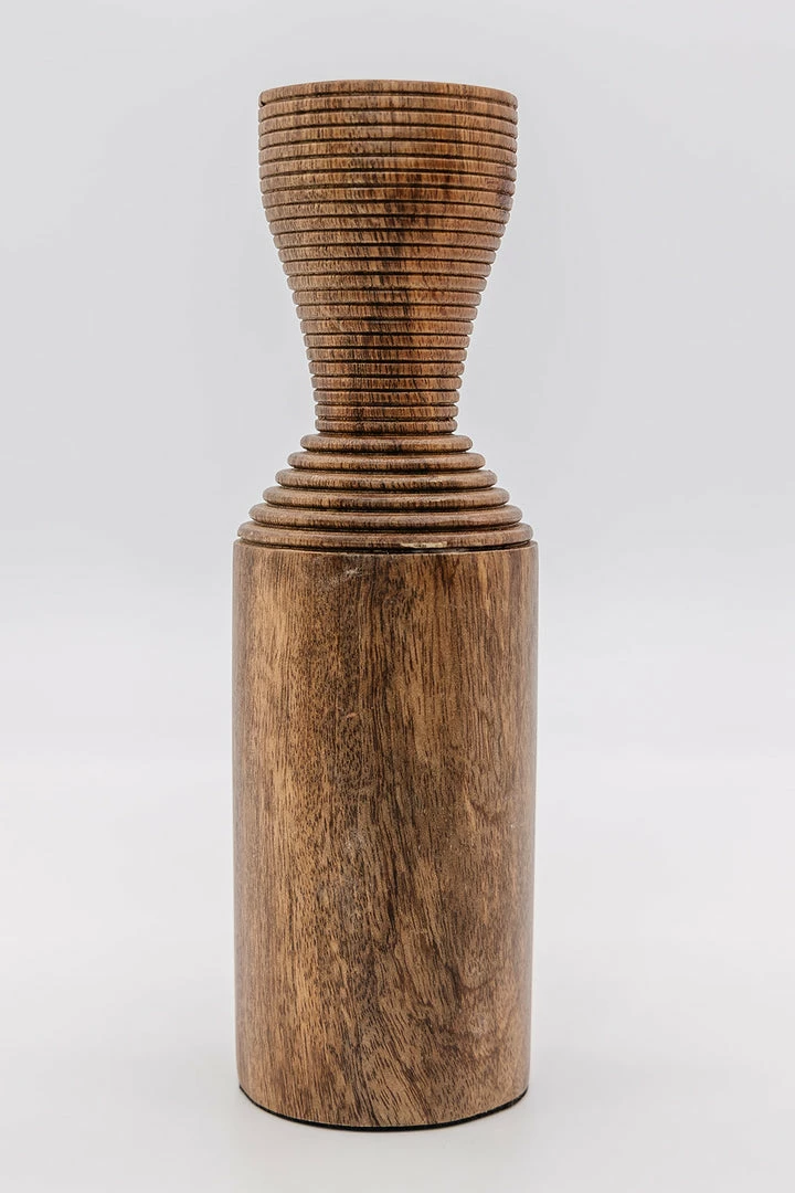 3″ Round x 9″H Hand-Carved Mango Wood Taper Holder, Walnut Finis