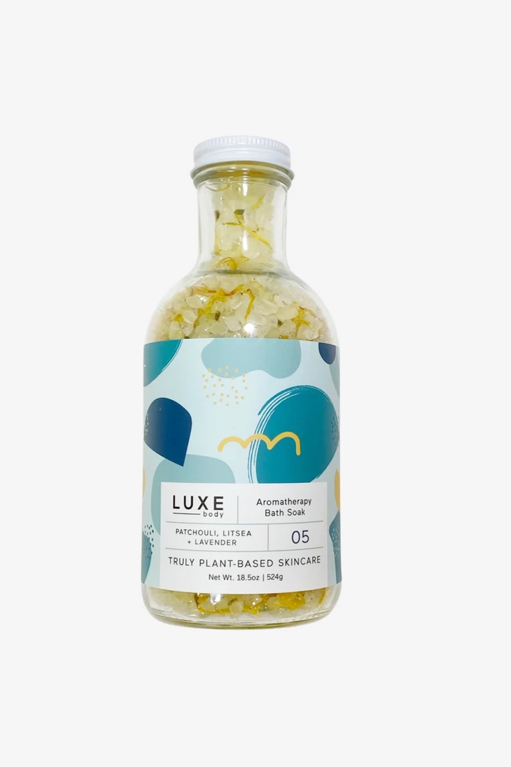Relax your cares away in our botanical, luxe sea salt soak scented with 100% essential oils. This aromatherapy essential oil blend and dried flowers will bring the spa into your home. Soak, relax, and enjoy! Comes in a glass jar and made in Atlanta, GA, USA – 18.5 oz each