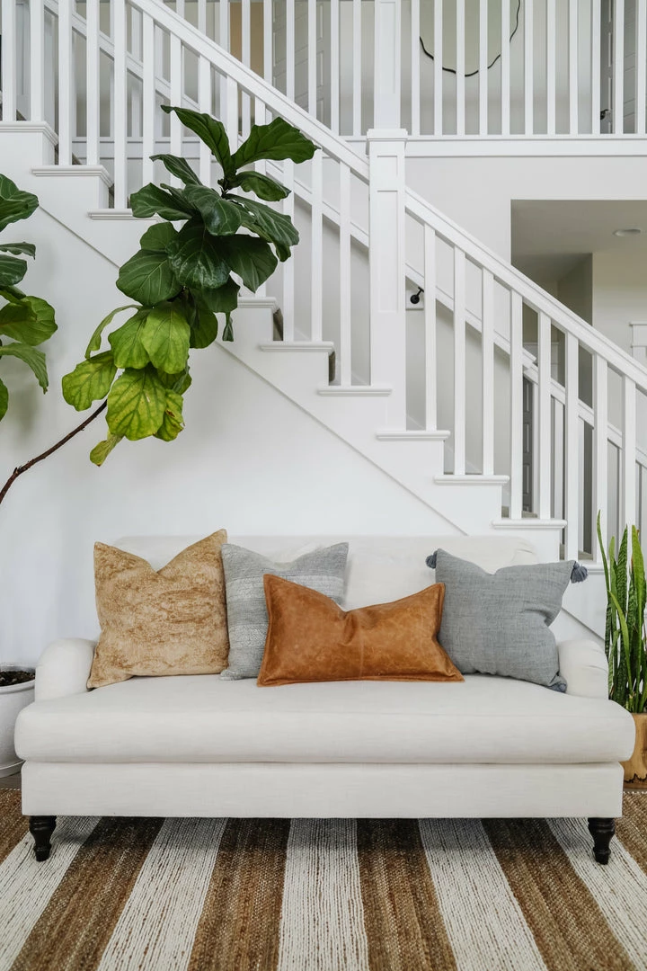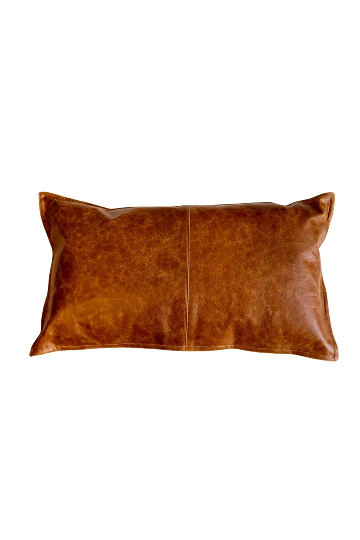 14″ x 26″ Leather lumber pillow with stitching detail on front. Linen backing provides a beautiful neutral vibe. This pillow goes perfectly in every space it is placed in…whether that be on a chair with a large throw placed with it or with a pairing of pillows on a sofa or bench!