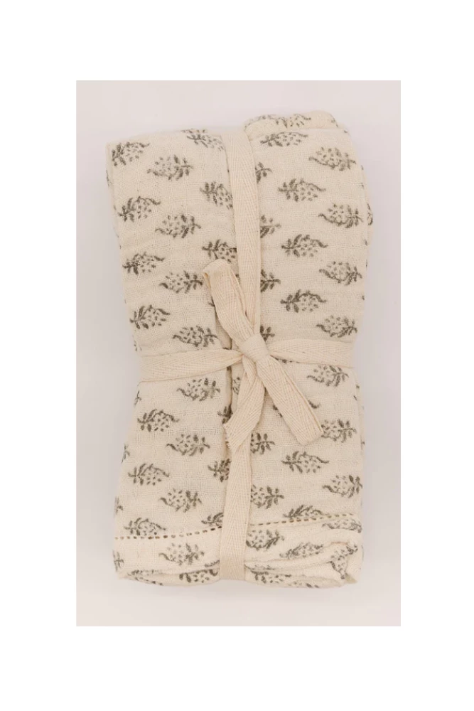 8″ Square Cotton Napkins w/ Printed Floral Pattern, Charcoal & Cream Color, Set of 4