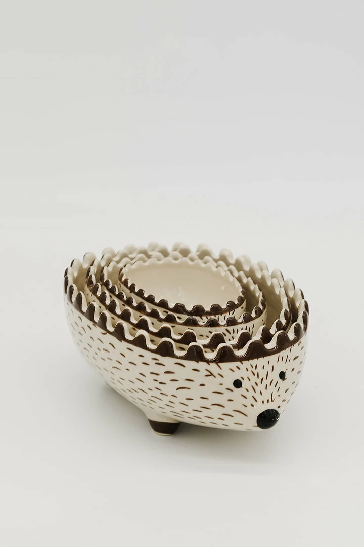 1-1/2, 1, 1/2 & 1/4 Cup Hand-Painted Stoneware Hedgehog Measuring Cups, Set of 4