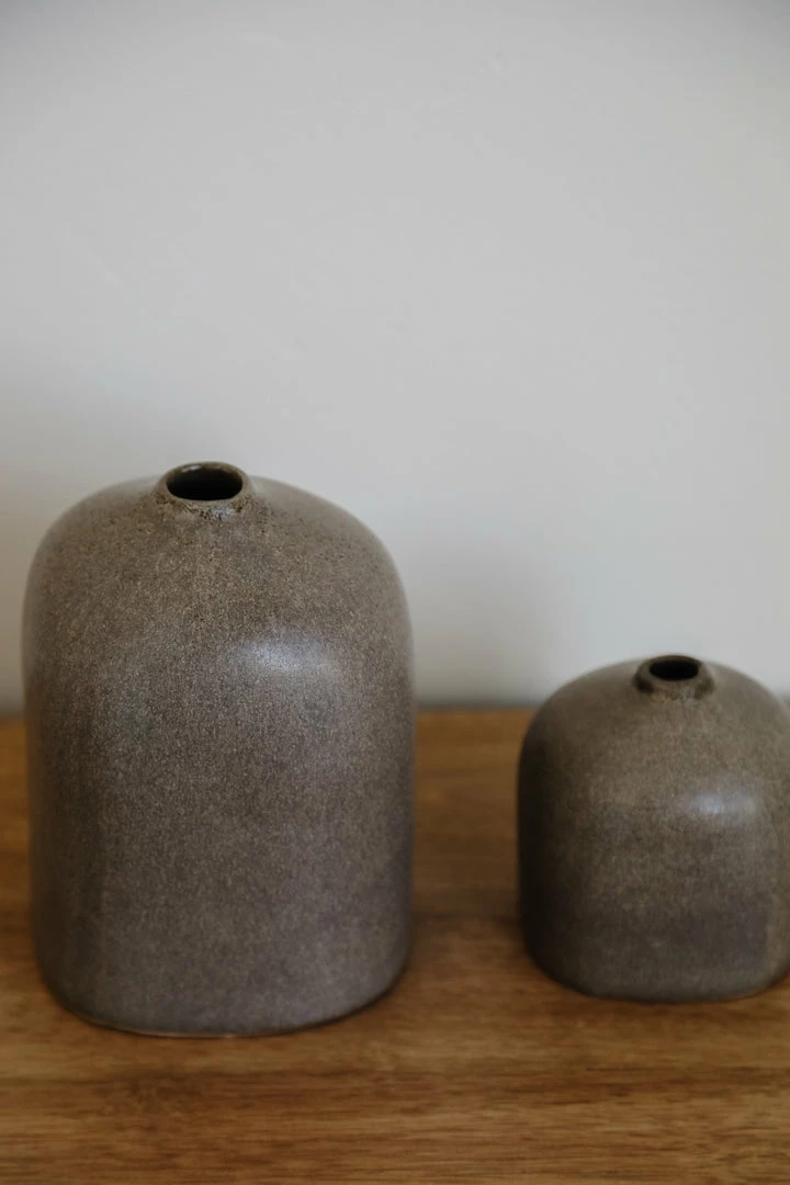 5-1/4″ Round x 6-3/4″H Stoneware Vase, Reactive Glaze, Grey (Each One Will Vary)