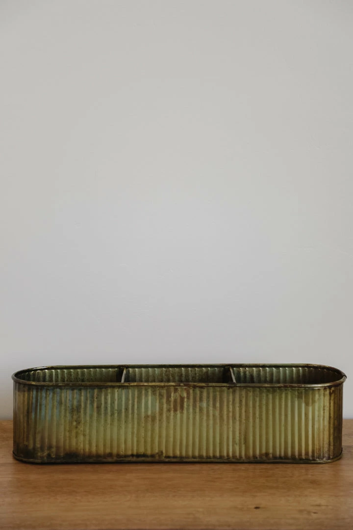 20″L x 4-1/2″W x 4-3/4″H Galvanized Metal Window Planter w/ 3 Sections, Antique Brass Finish