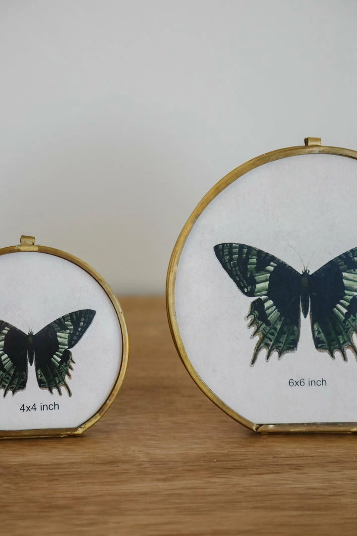 4″ Round Brass & Glass Photo Frame (Holds 3-1/2″ Round Photo)