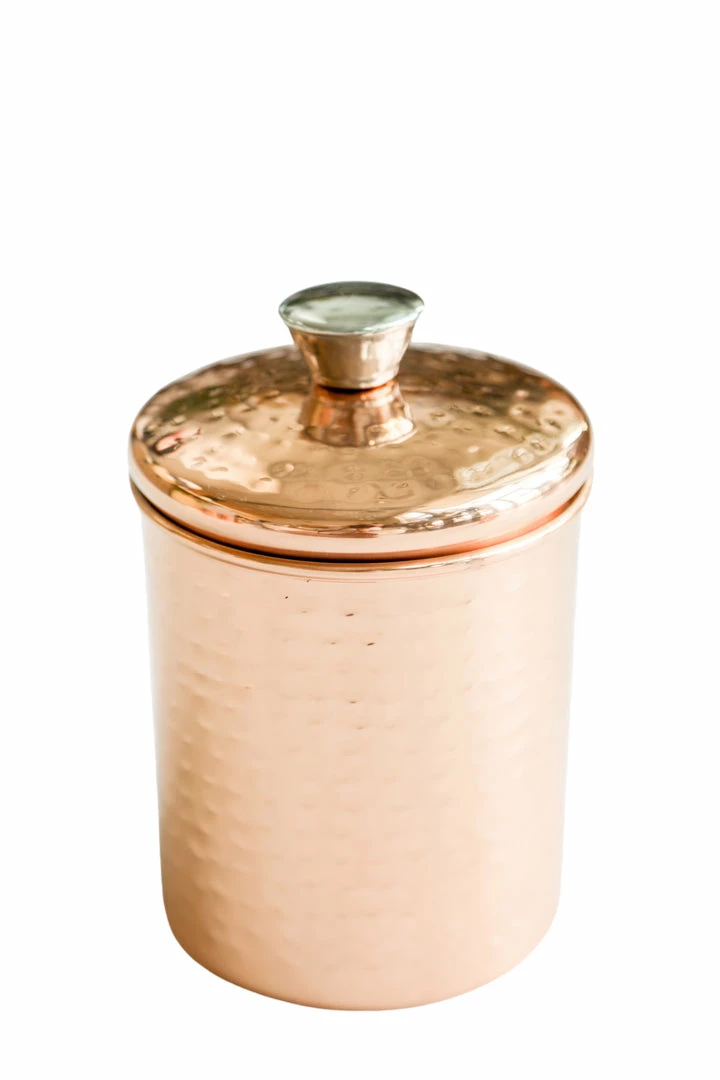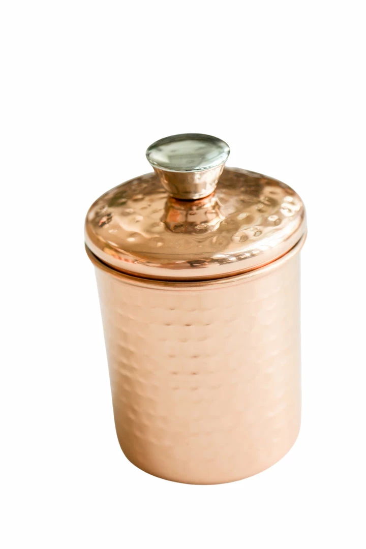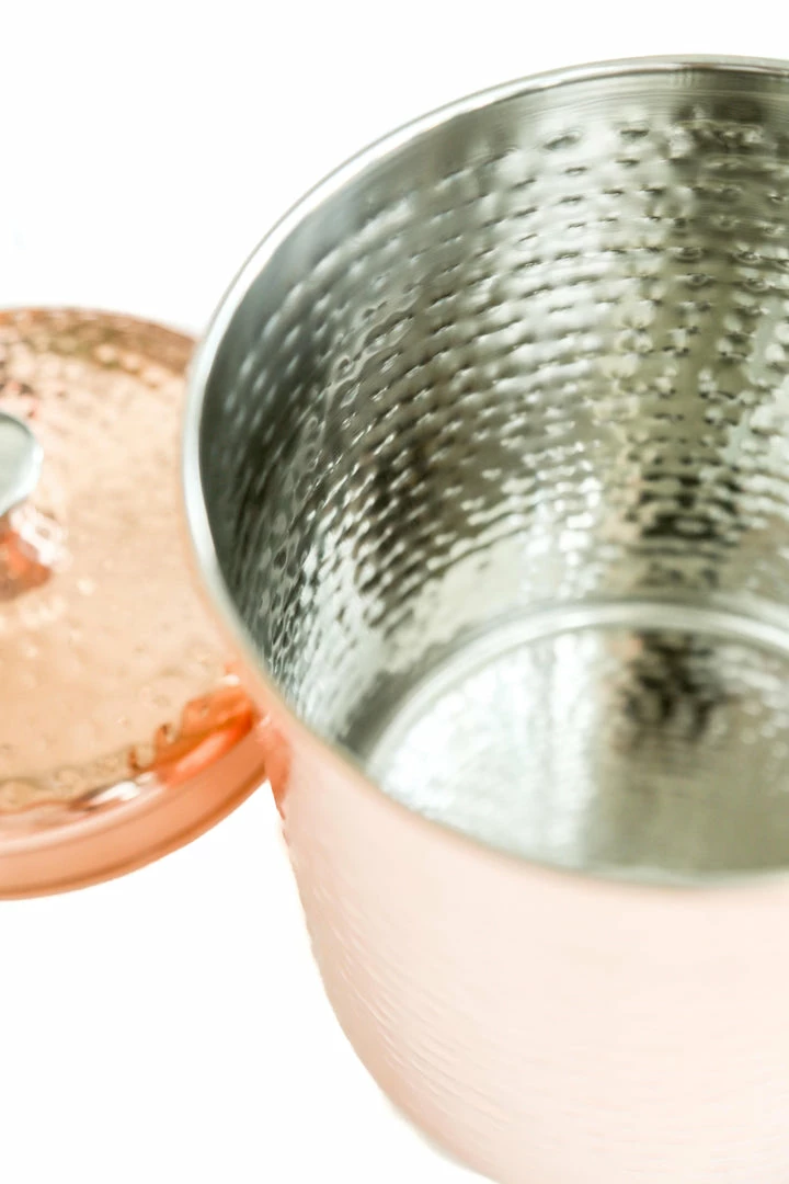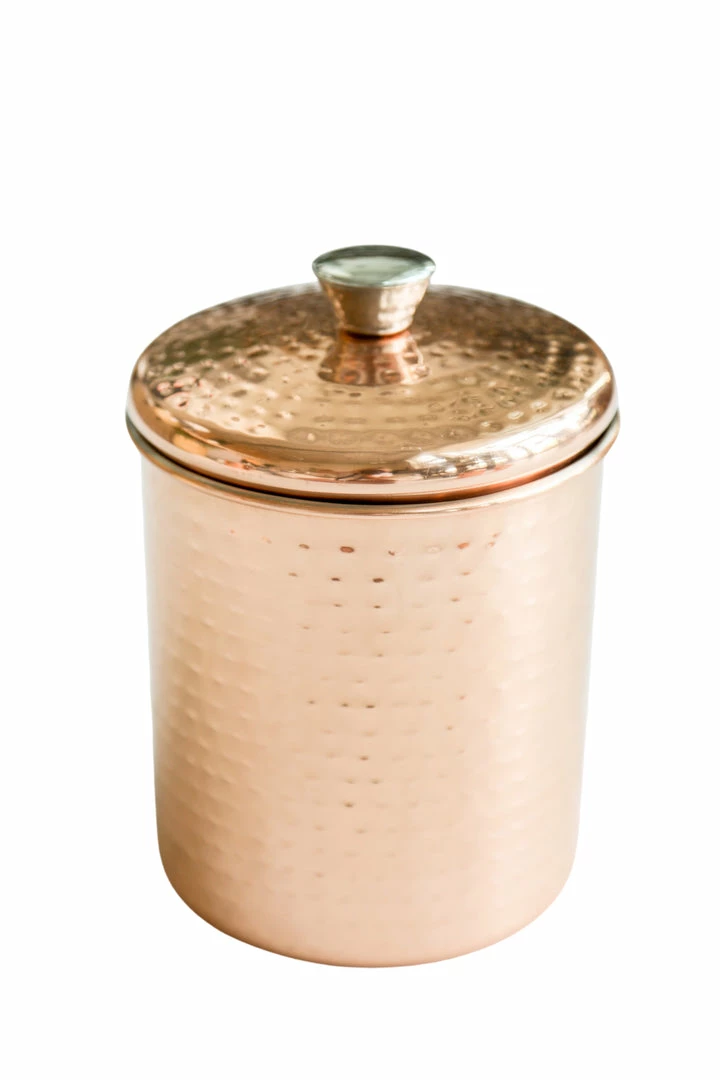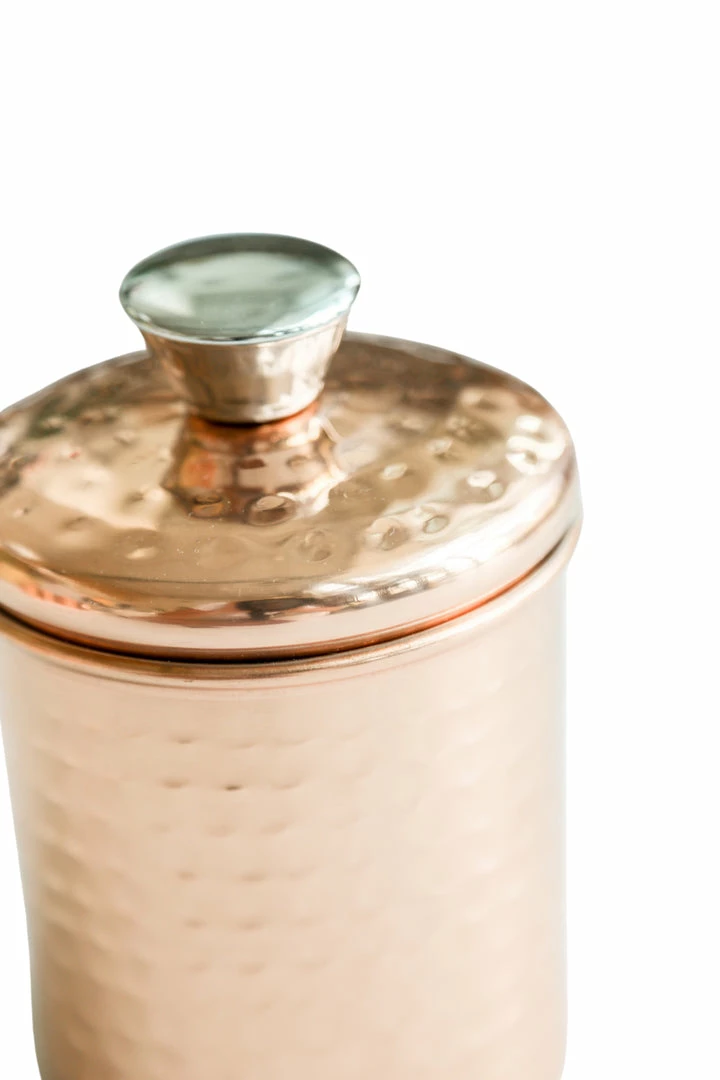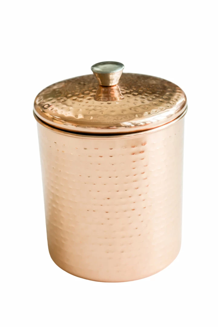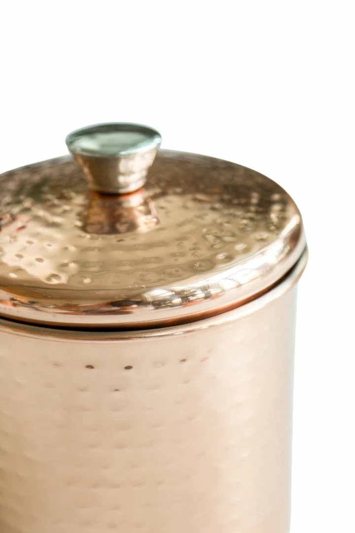 9″H, 8″H, 7″H & 5″H Hammered Stainless Steel Canisters w/ Copper Finish