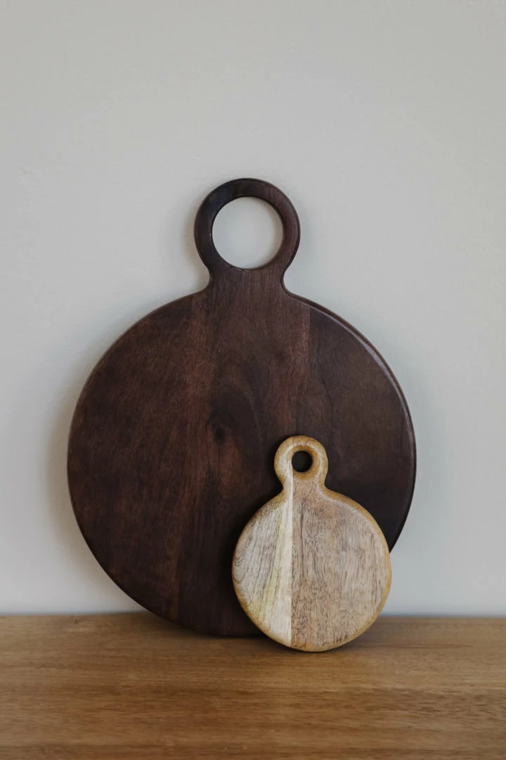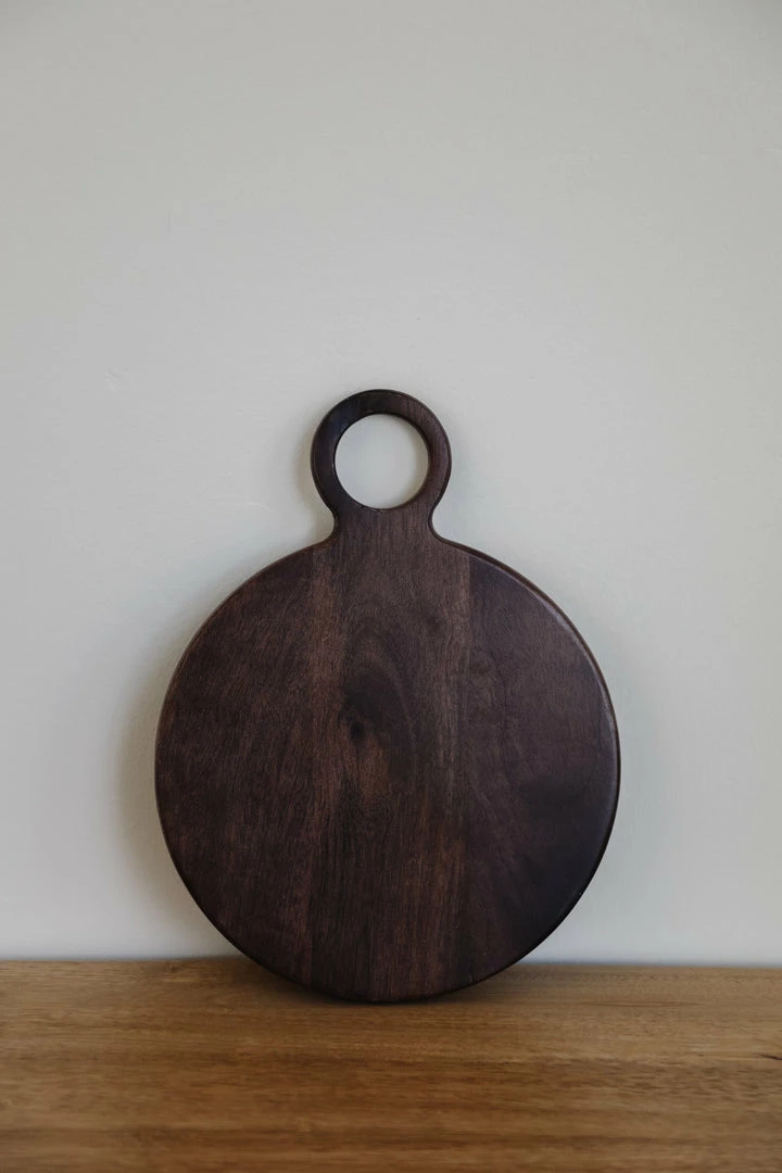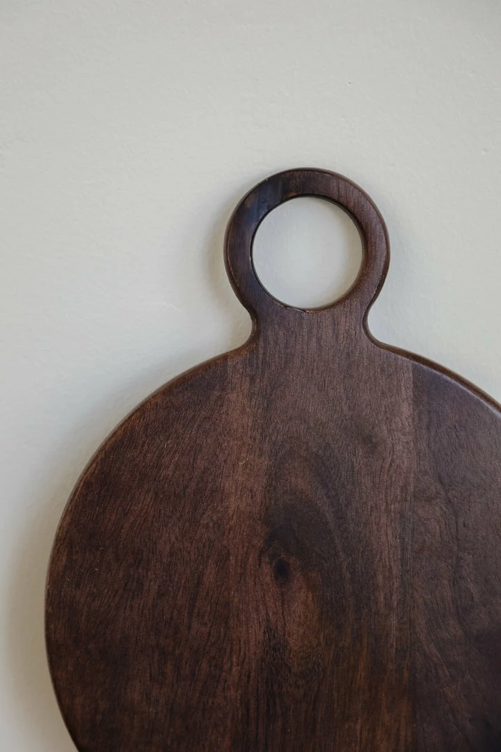 12-3/4″L x 10″W Mango Wood Cheese/Cutting Board w/ Handle, Walnut Finish