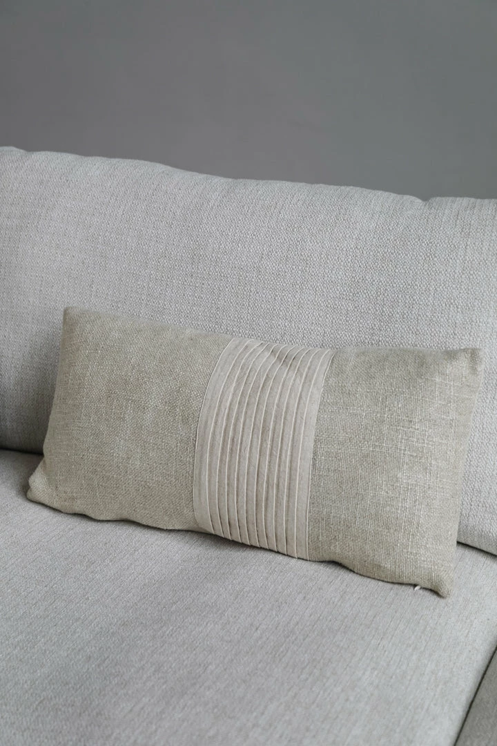 24″L x 12″H Linen Blend Pleated Lumbar Pillow, Natural