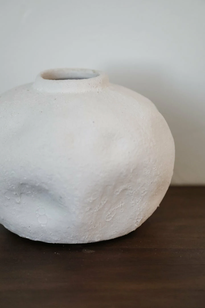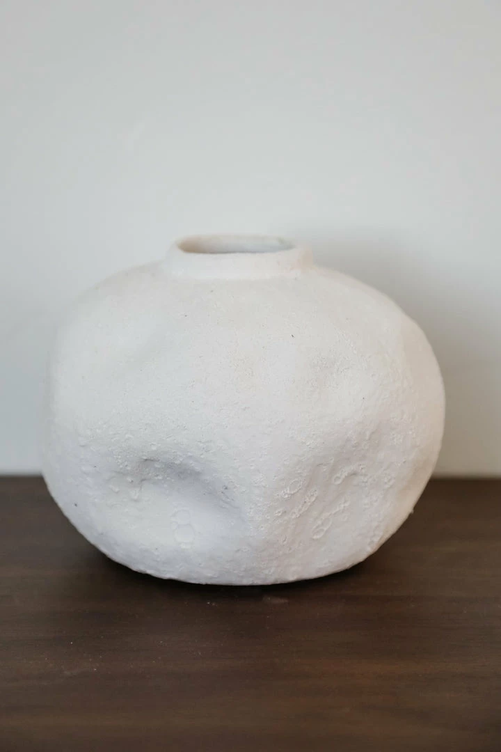 6-3/4″ Round x 5-1/2″H Terra-cotta Organic Shaped Vase, Volcano Finish, Matte White (Each One Will Vary)