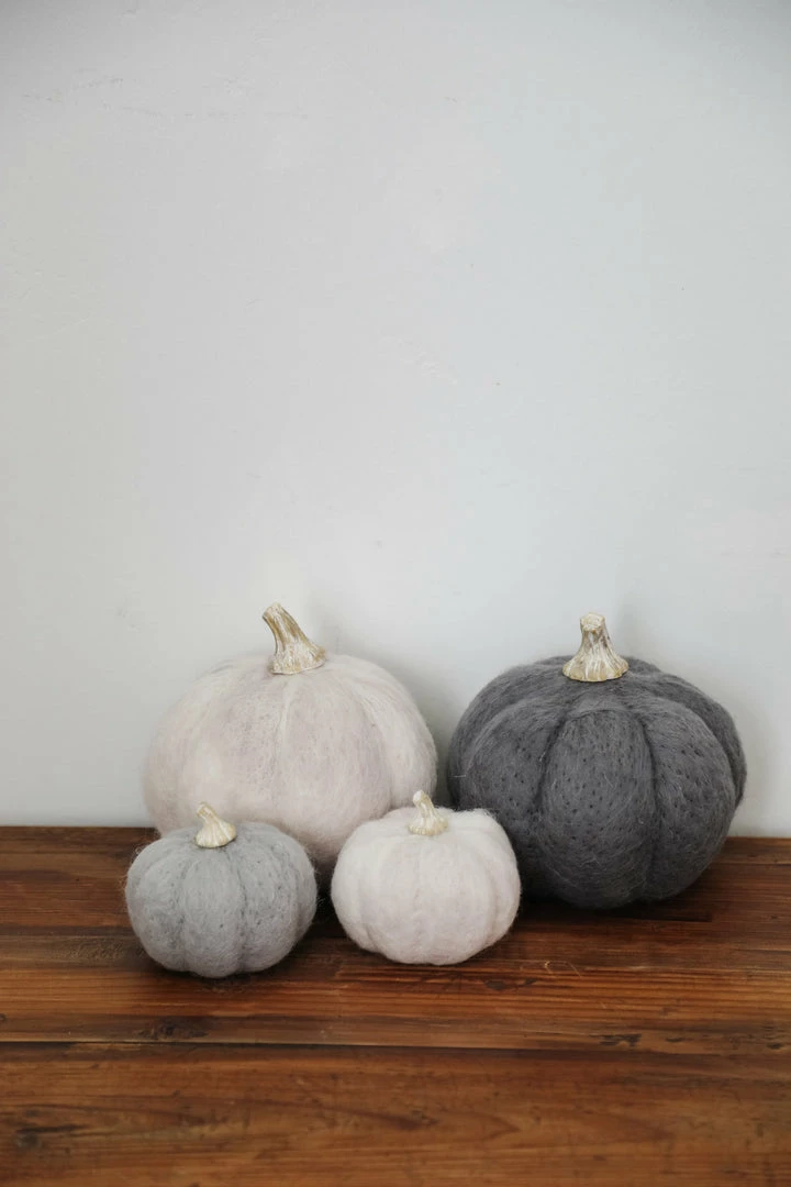 4-1/4″ Round x 4-1/4″H Wool Felt Pumpkin w/ Resin Stem