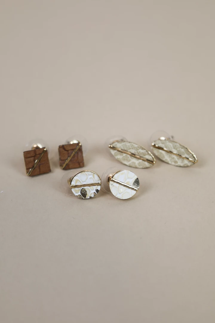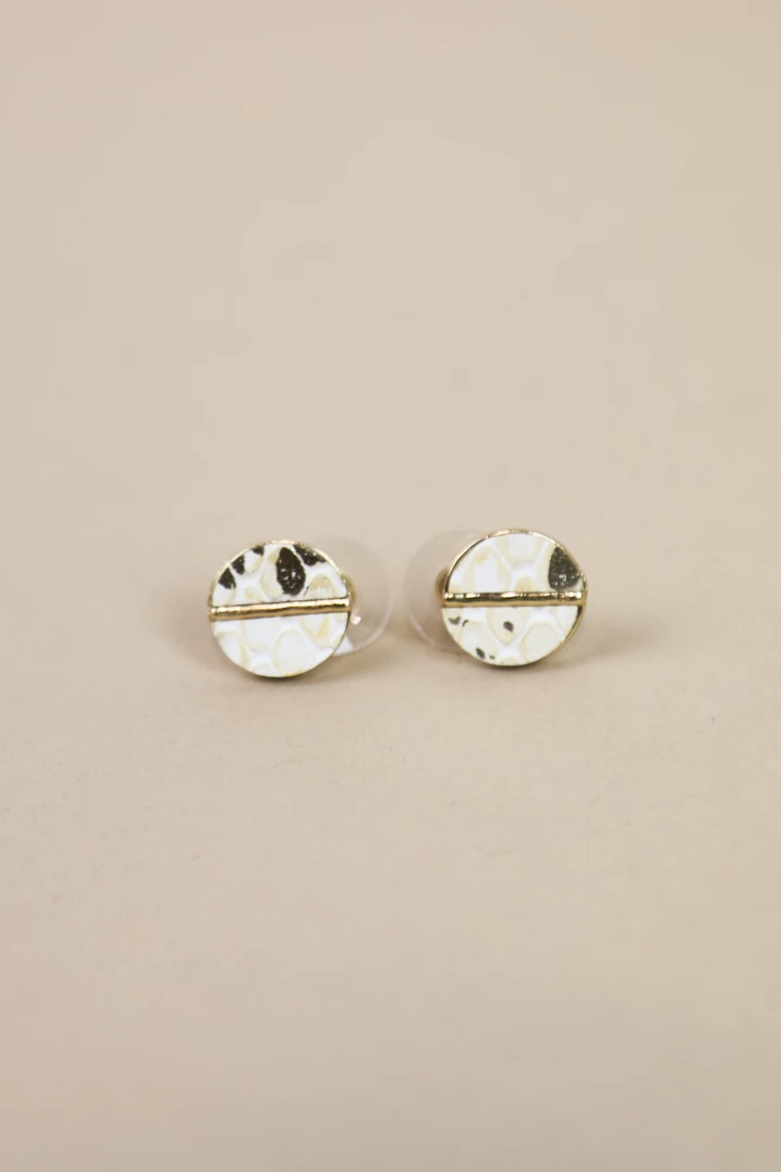 The Bronx Print Studs are an animal print stud earring that come in various shape and size with a gold line down each center.