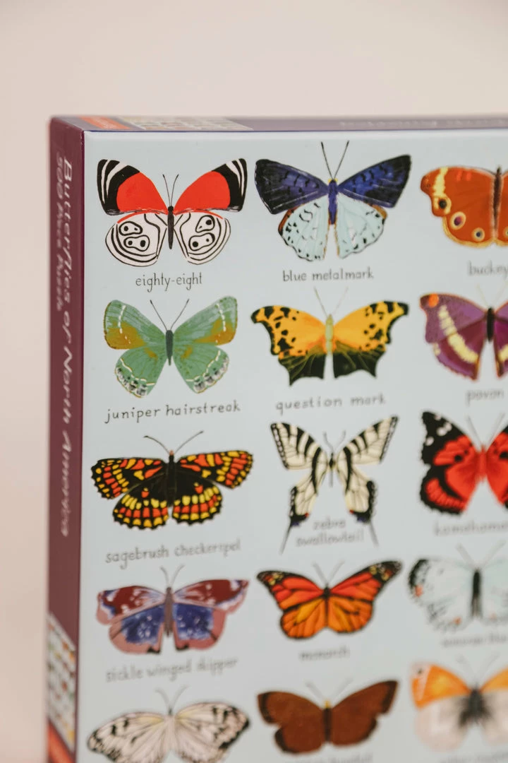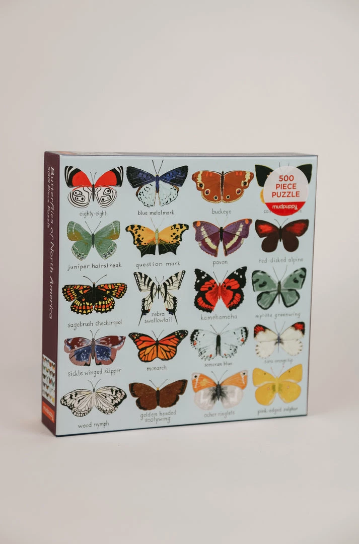 Put together this 500-piece family puzzle from Mudpuppy to reveal a series of colorful butterflies that inhabit North America. This fun and eye-catching illustration include 20 different kinds of butterflies. Puzzle pieces come packaged in a sturdy and easy-to-wrap box, perfect for gifting, reuse, and storage.