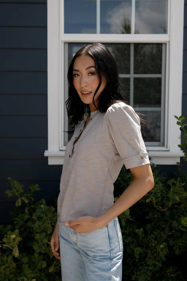- Half Puff Sleeves + Button Closure