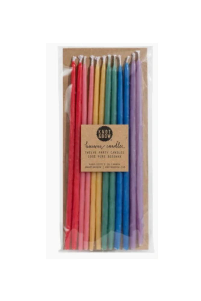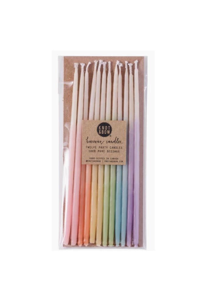 These unique 100% pure beeswax birthday candles are hand-dipped and have a light natural beeswax scent. Traditional ivory fades into lovely ombré color. Details: 12 pure beeswax candles, 6″ tall, Burn time of 30 minutes, Hand-dipped in Canada and packaged with love in Brooklyn.