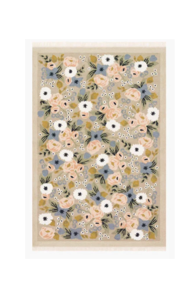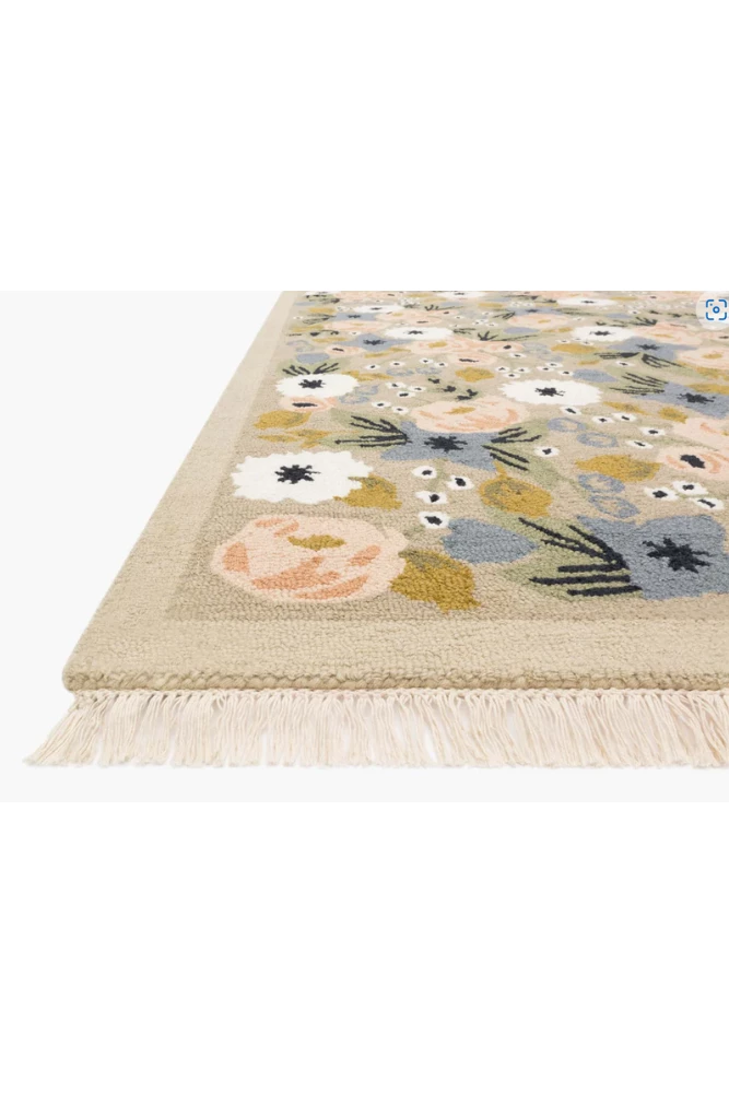 The Colette Collection for Rifle Paper Co. x Loloi is hooked of 100% wool by artisans in India. Gracefully designed with trailing blooms, each piece is finished with a subtle fringe.