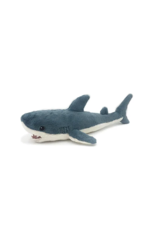 This beautifully crafted , not so scary, shark is the perfect cuddle buddy. His slate blue soft fur make him the perfect snuggle buddy!