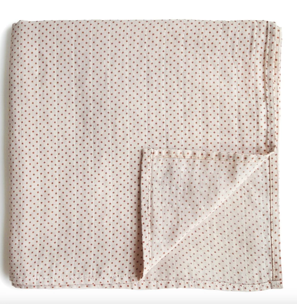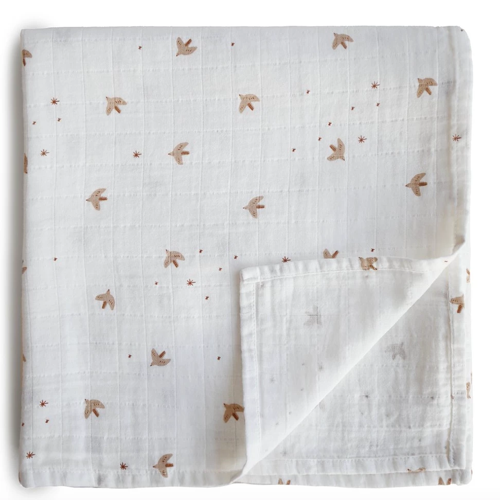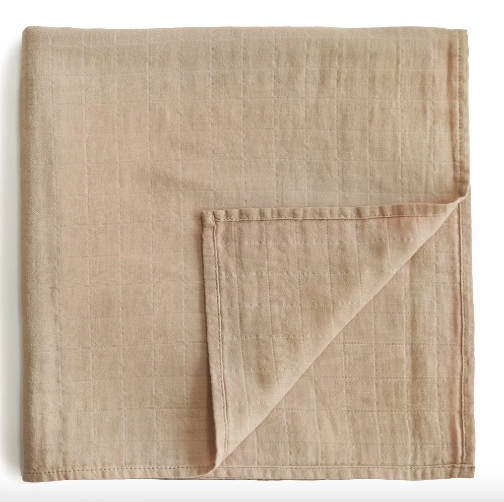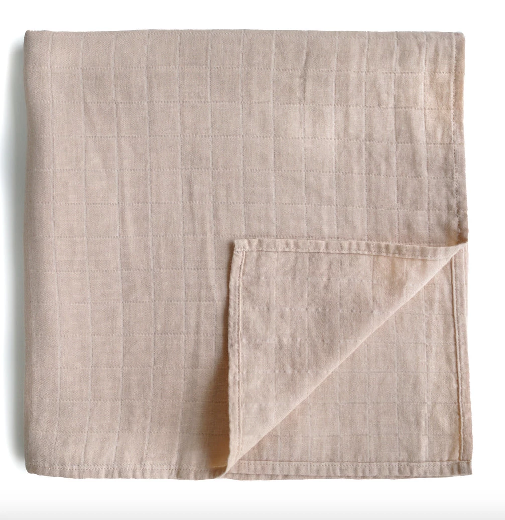 Nap time just got so much more cozy with the Mushie muslin baby swaddle – ideal for swaddling, nursing, and cuddling your baby.