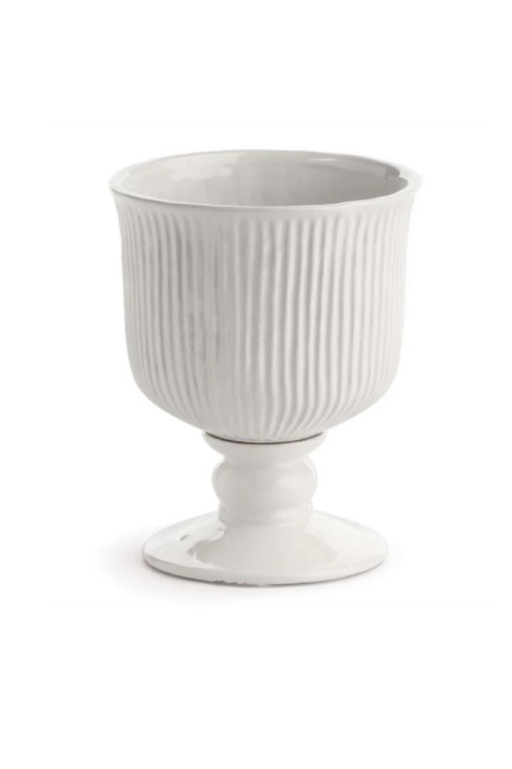 The traditional shape and ribbed design are traditional in feel. Drop in your favorite floral, and you’ve got a beautiful centerpiece.