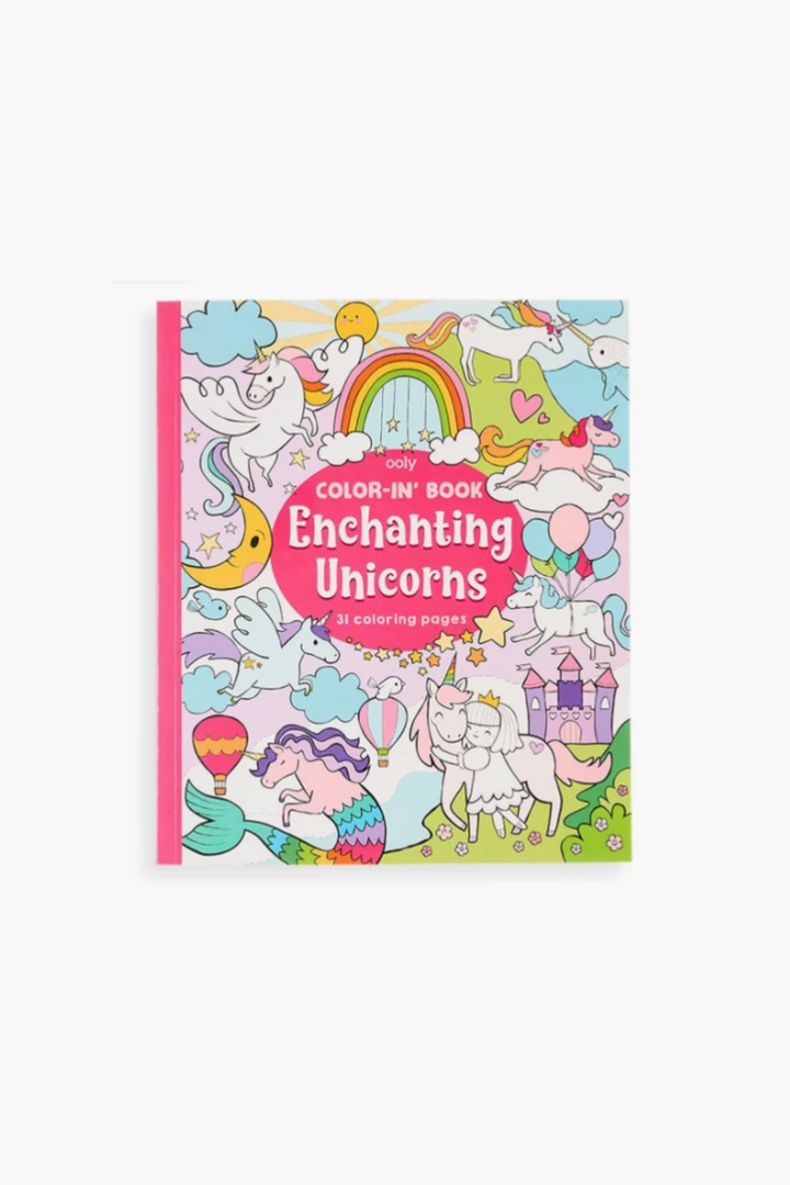 Delightful 31 page Enchanting Unicorns Coloring Book for kids with fun and inspiring designs, complete with perforated pages for easy framing and gifting.