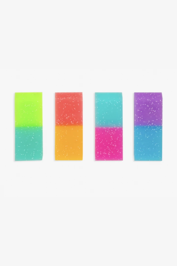 Erase pencil mistakes in a big way with Oh My Glitter! Jumbo Erasers. These pencils erasers have lots of glitter and two colors in one; one on each end of this delightful gummi-like eraser. Oh My Glitter!