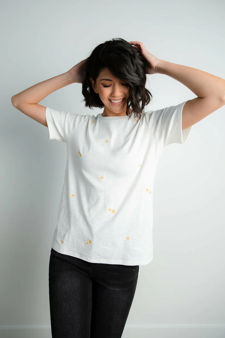 Small: Bust 17″, Length 21″, Sleeve 7″