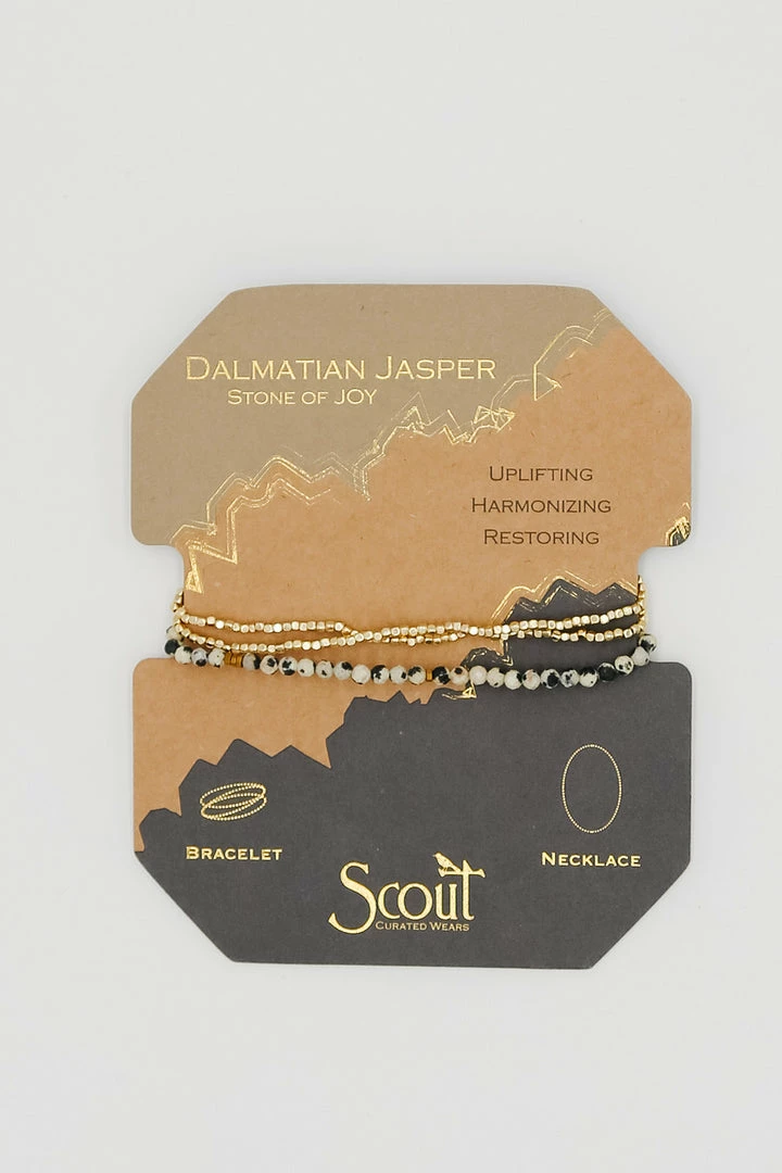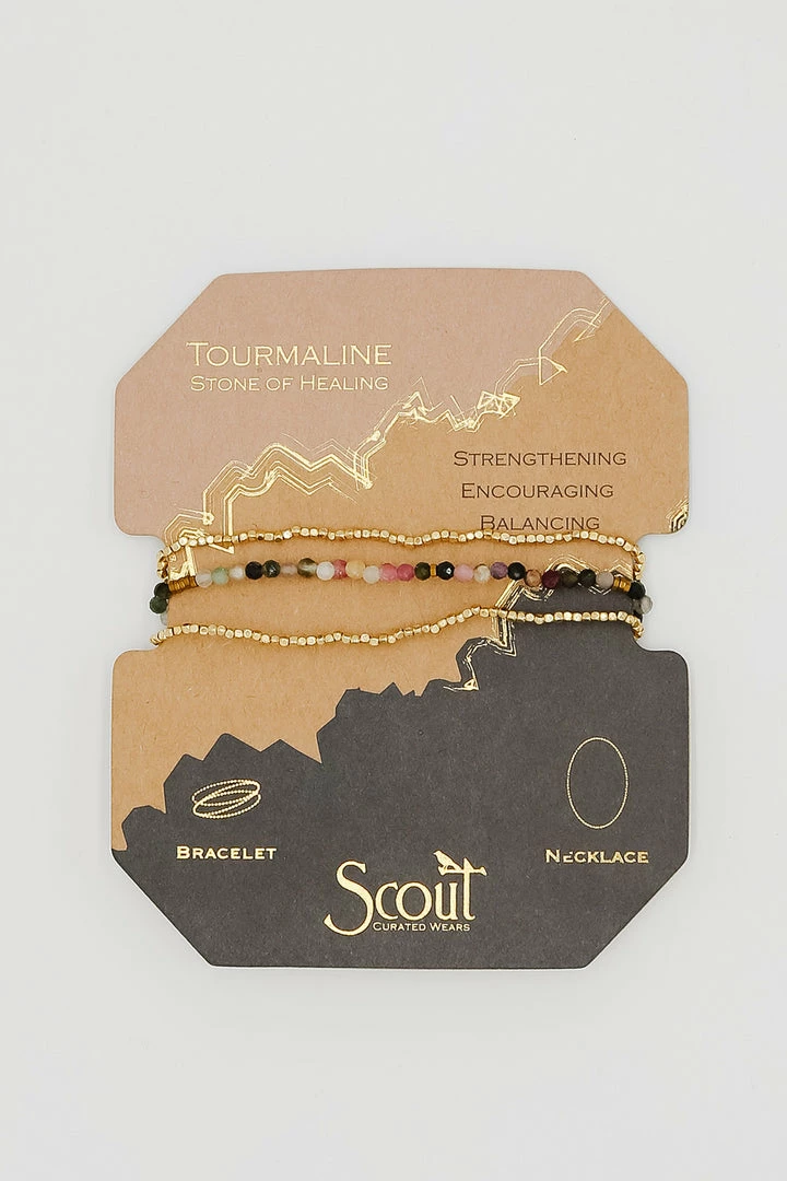 Faceted gemstones mix with tiny geometric metal beads to create a subtle and magical piece. Wraps as a bracelet 3 times or wear as a single strand necklace.