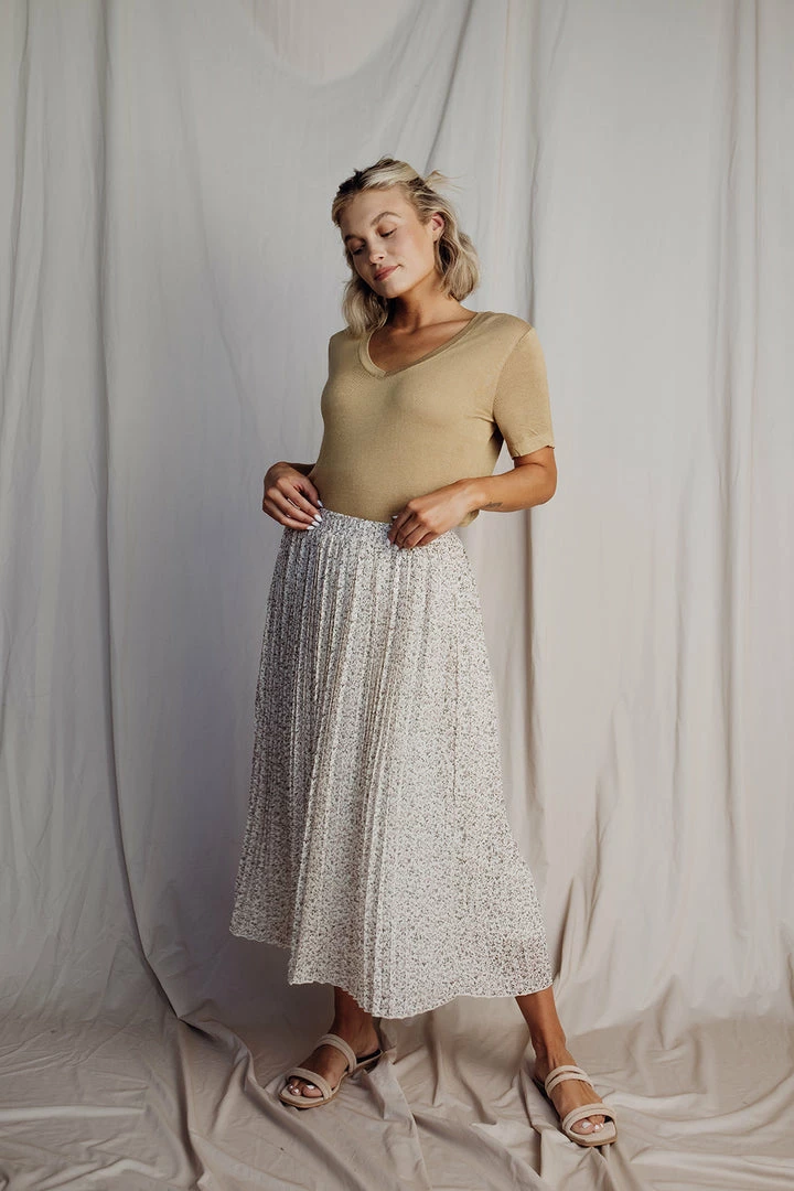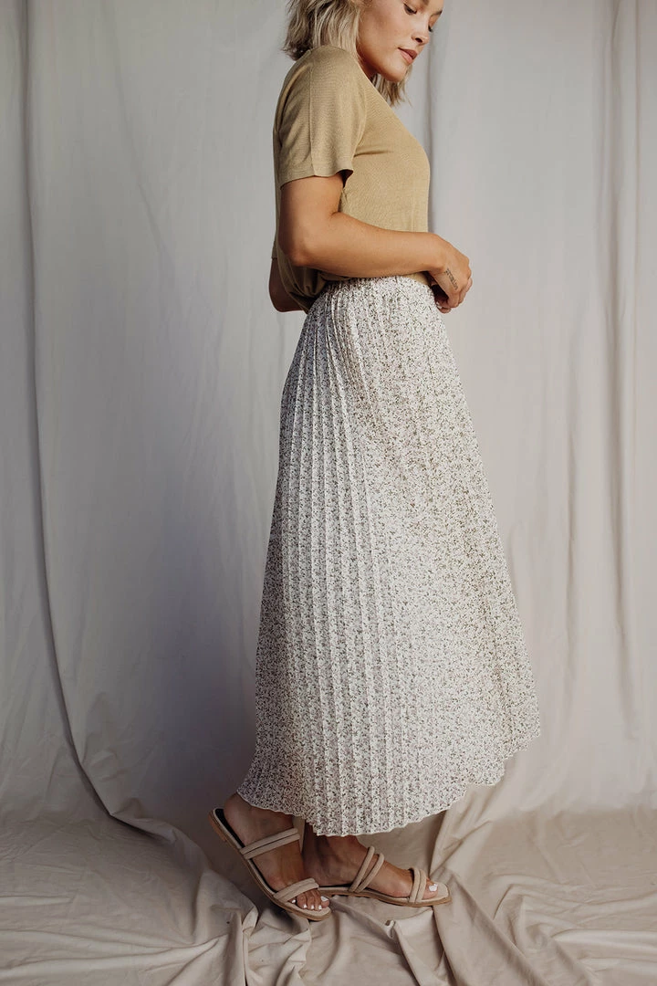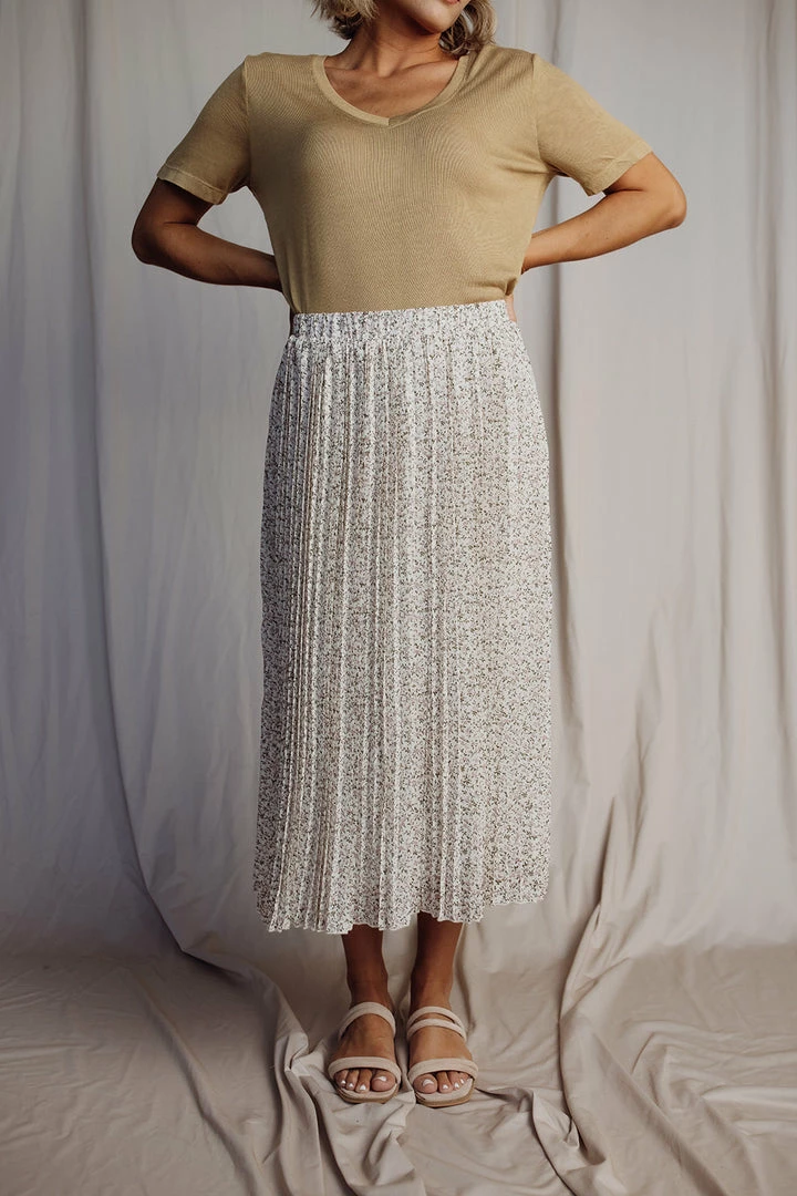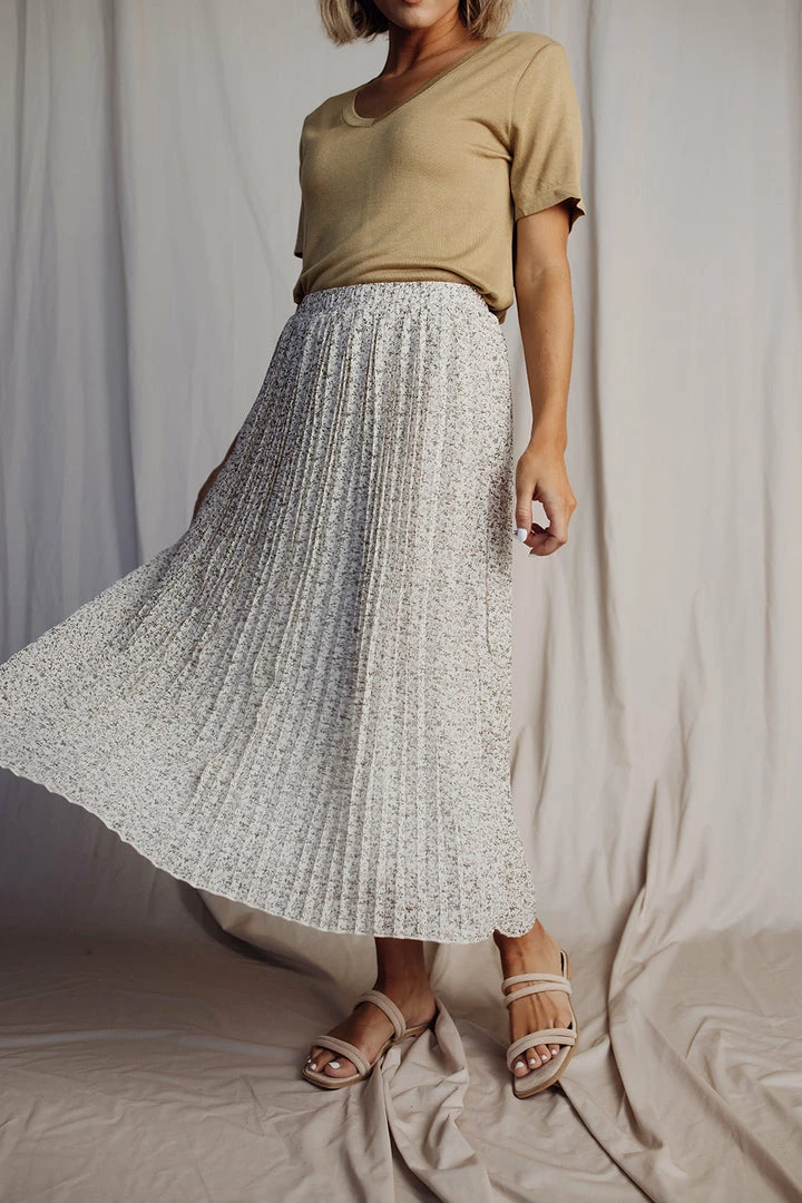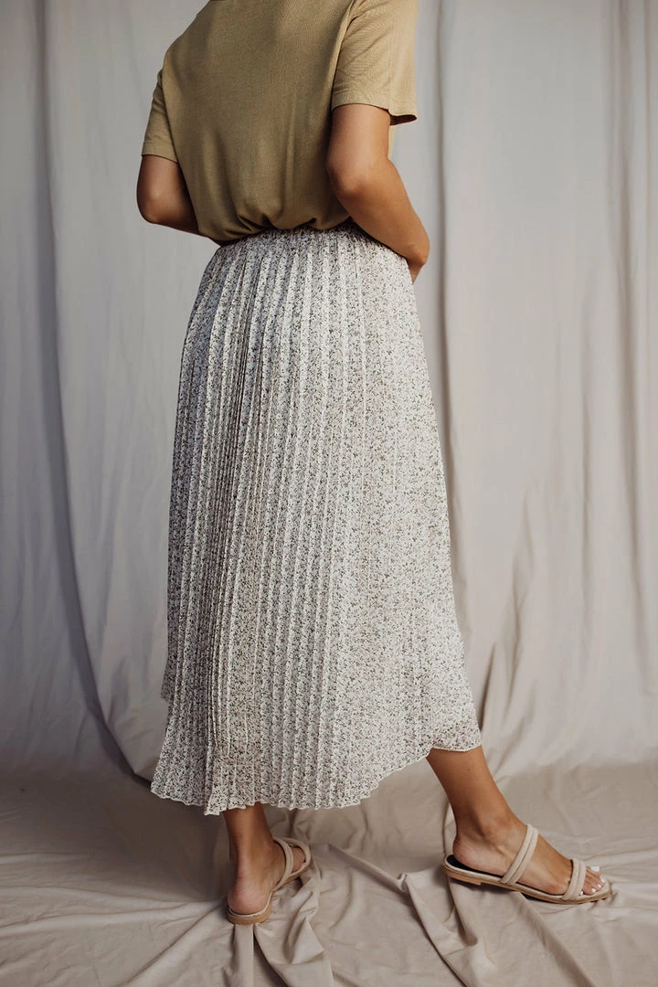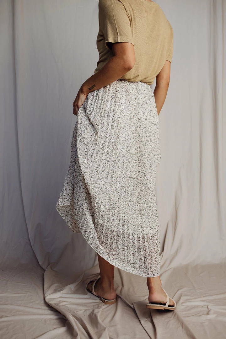 This is the kind of skirt that looks different with every different color + style top- basically giving you a skirt that looks new with each wear. Featuring a white lightweight body with a dainty floral detail and smocking. Has an elastic waist + fully lined.