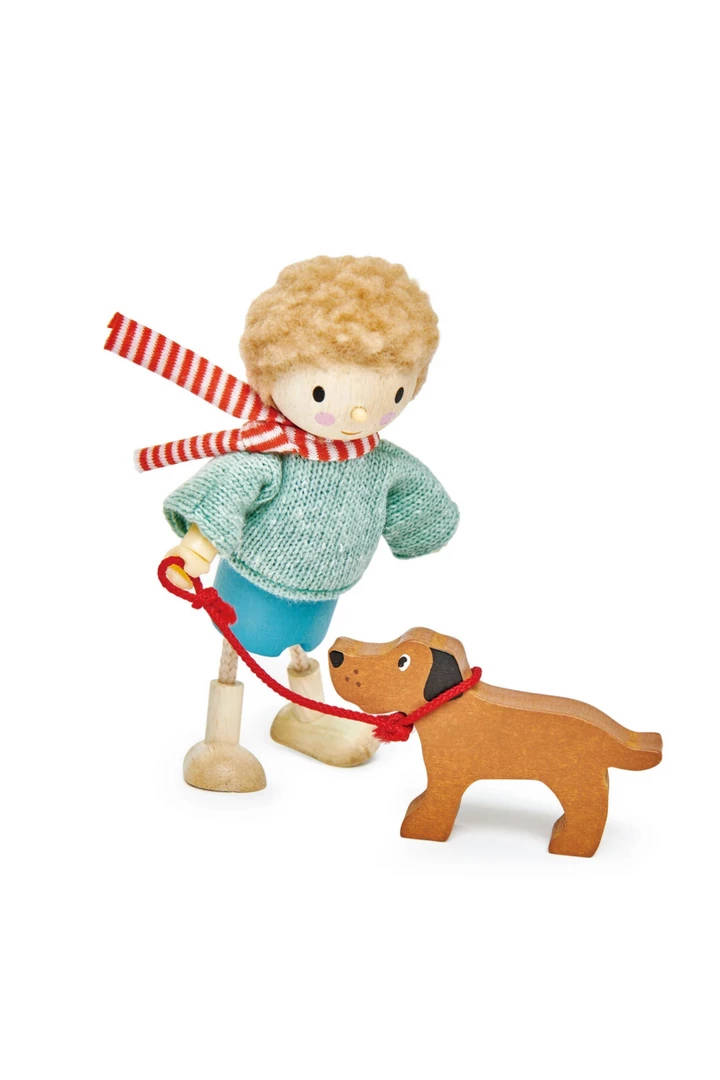 Meet Mr Goodwood out walking with his trusty pet dog. Made from solid wood with beautiful quality knitted and jersey fabrics.