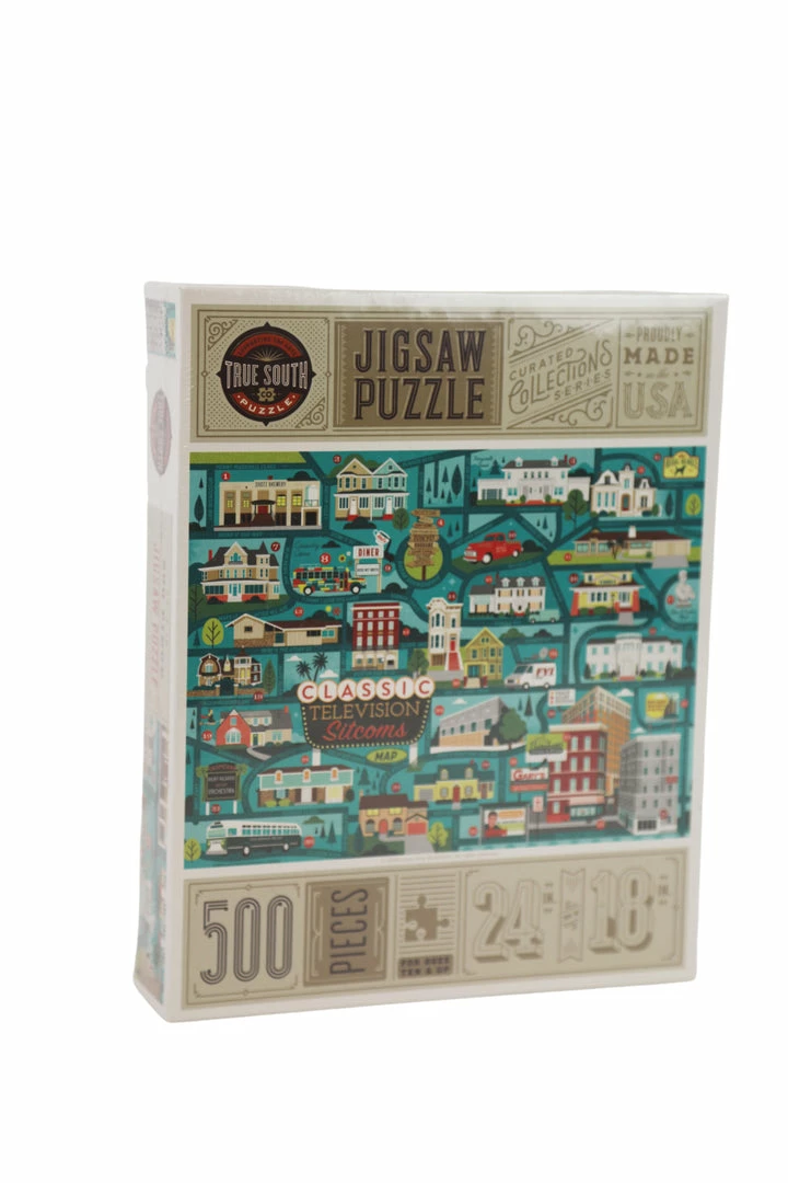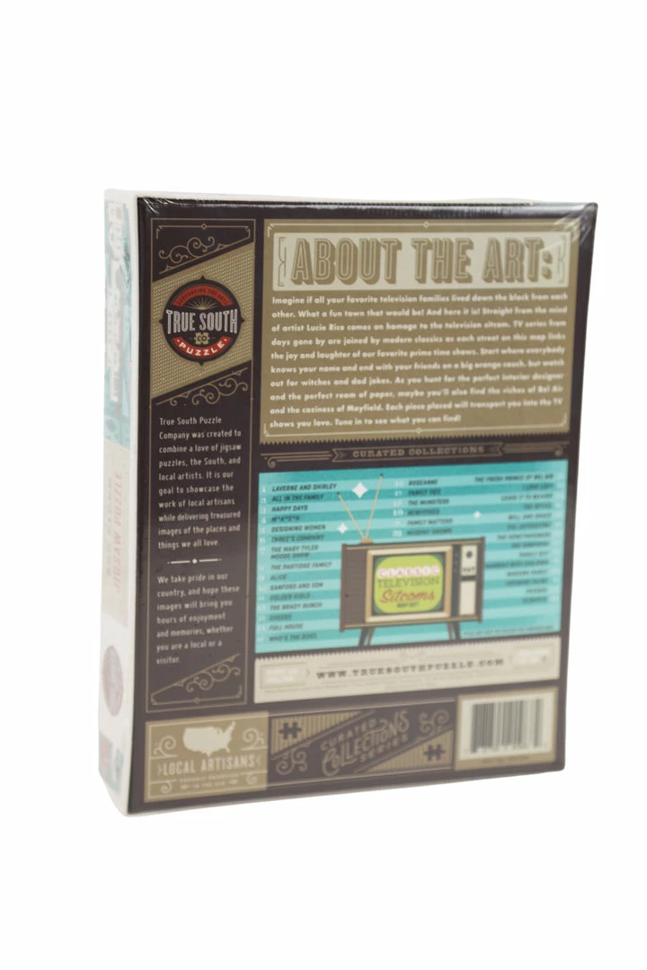 Straight from the mind of artist Lucie Rice comes an homage to the television sitcom. TV series from days gone by are joined by modern classic as each street on this map links the joy and laughter of our favoite prime time shows. Each piece will transport you into the TV shows you love. Tune in to see what you can find!